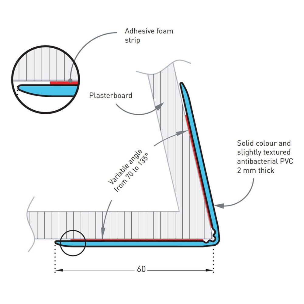 Acrosmart SPM Combo Flex beschermt alle hoeken blootgesteld aan zowel frequent als lichte impact. De kleur in combinatie met lichte textuur, maakt dat de hoekbescherming een mat uiterlijk krijgt. De verschillende afmetingen en kleuren biedt ruime mogelijkheden binnen elk interieur in de gezondheidszorg, onderwijs, zorg, ziekenhuizen, horeca en farmaceutische industrie.