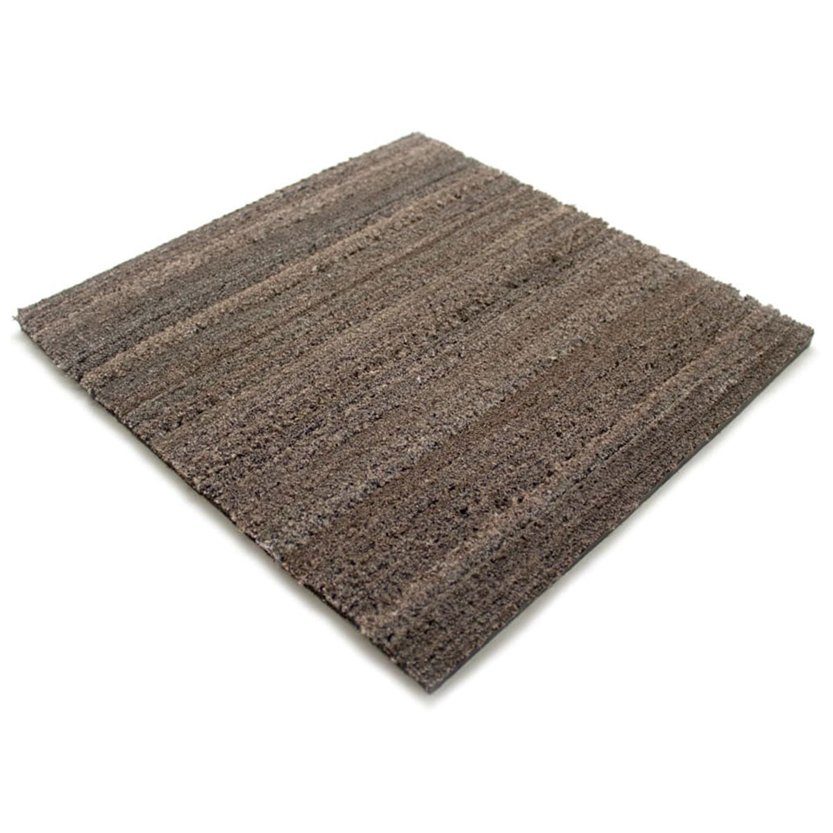 De Ecotire is een stijlvolle mat die in vele interieurs tot zijn recht komt. De mat is gemaakt van oude (auto)banden, zo krijgen versleten banden een nieuw leven als slijtvaste mat. Ecotire is schrapend en drogend, doordat het rubber in stroken tegen elkaar aan liggen. Het materiaal heeft een gemêleerd effect, hierdoor valt het niet op als er vuil op de mat achter blijft.