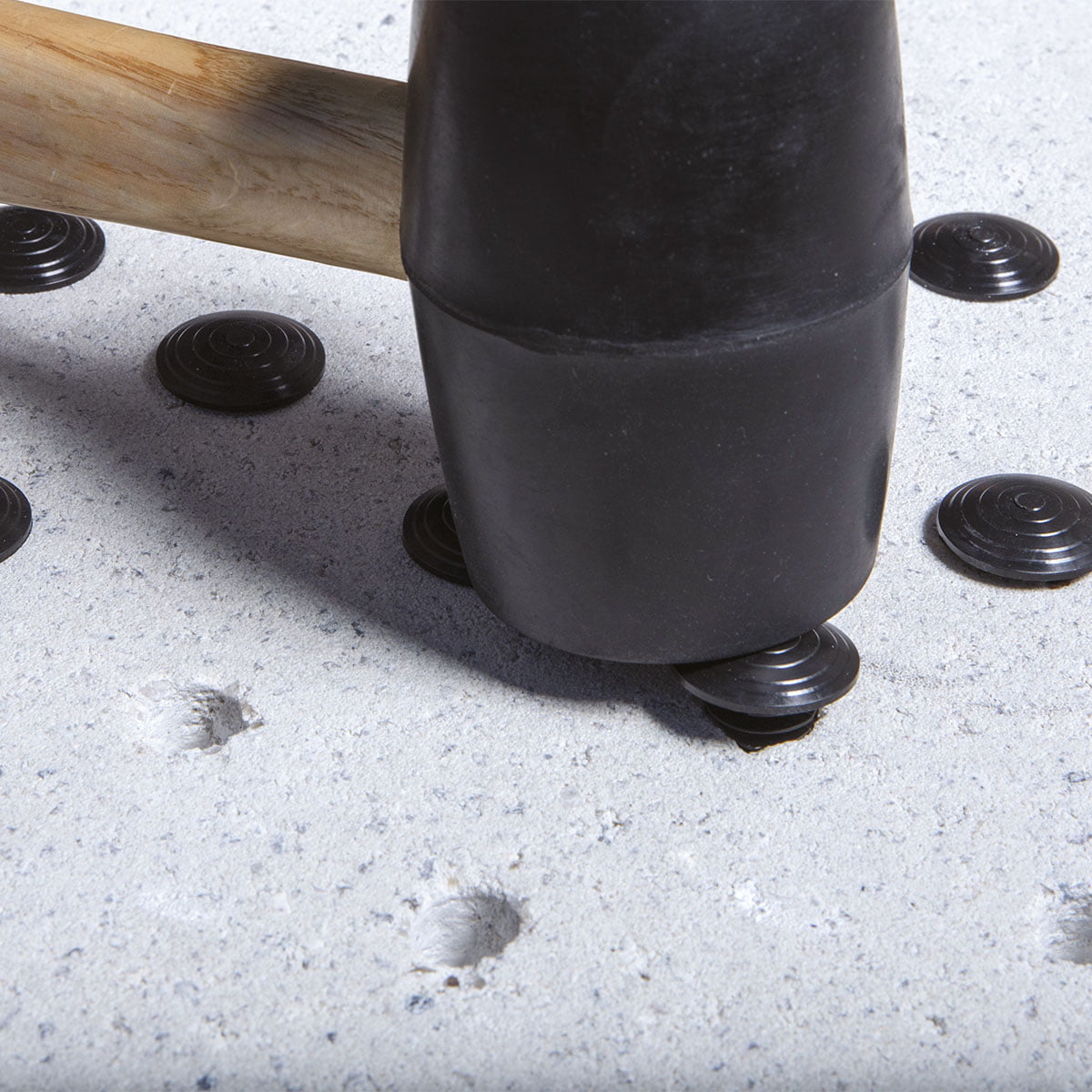 Zorg ervoor dat de ondergrond glad is en vrij van stof en vuil. Teken het gebied uit waar de noppen moeten komen. Met een kit van 250 stuks kan je een gebied van ongeveer 165 cm x 40 cm bekleden of 130 cm x 60 cm.