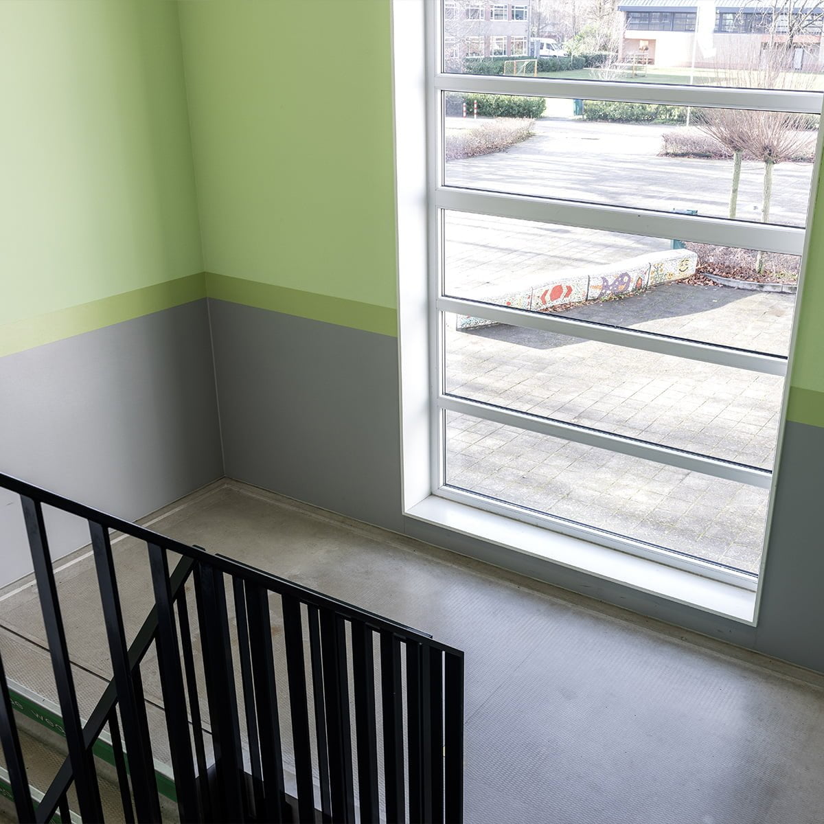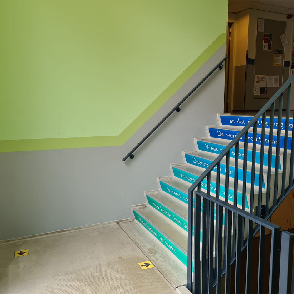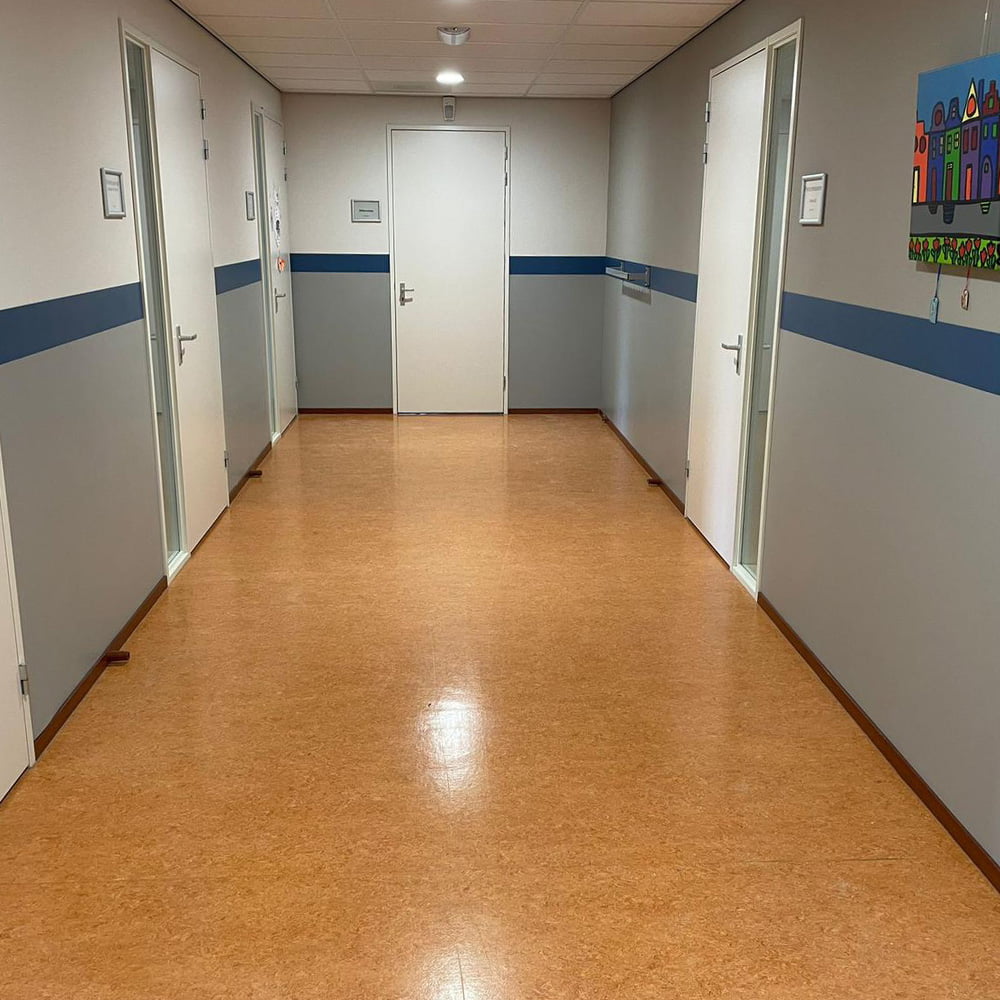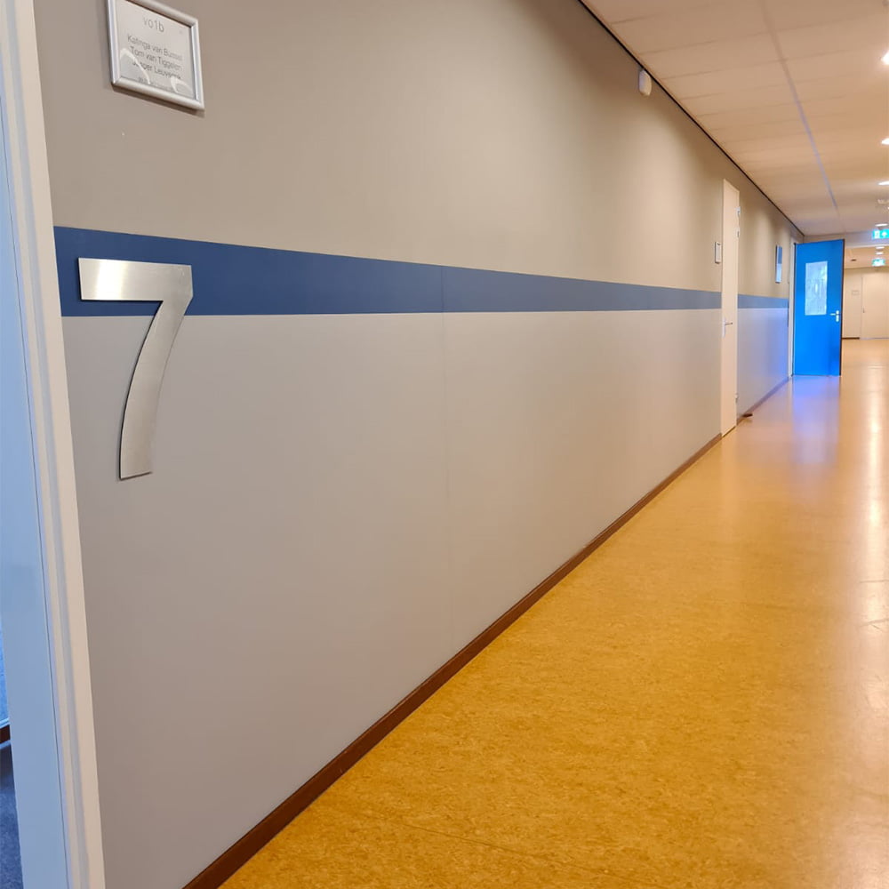 Een locatie waar wij al vaker hebben gewerkt is het Centrum voor Onderwijsexpertise in Heeze. In deze veelzijdige school hebben wij de wanden gelambriseerd met Decochoc wandbescherming. Door de keuze van twee kleuren hebben de panelen niet alleen een praktische taak, maar zijn ze ook nog eens een toevoeging aan het interieur. Voor de basis is de kleur Gravel gekozen en de accenten zijn van Denim en Bamboo.