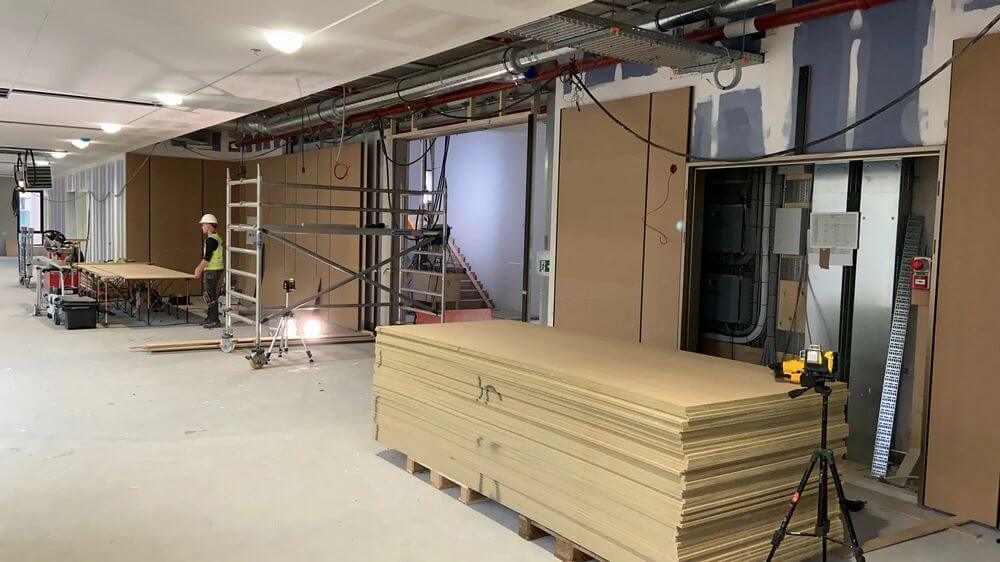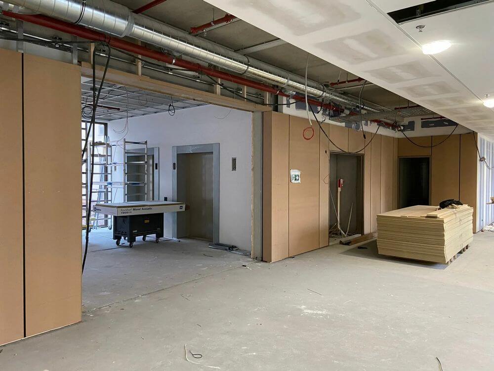 Eind 2021 zijn we begonnen aan dit grote project. Als eerst moesten de liftkernen voorzien worden van MDF platen, dit is de basis voor de wandbescherming. De houten platen dienen als kern en ter bevestiging, van de aluminium panelen die later volgen. Alle panelen zijn precies op maat gemaakt, uitgemeten en genummerd. In totaal zijn er zes liftkernen voorzien van wandbescherming. Elk paneel is uniek en op maat gemaakt door onze metaalleverancier, langs de coater gestuurd om alle platen te voorzien van de juiste RAL kleur. Zodra de locaties klaar waren voor de finishing touch zijn onze vakmannen aan de slag gegaan om de gecoate aluminium panelen op de juiste MDF platen te monteren. Een precieze klus met als resultaat een strak en uniforme uitstraling. Eind november is het laatste paneel geplaatst en kunnen vol trots dit project als referentie noteren.